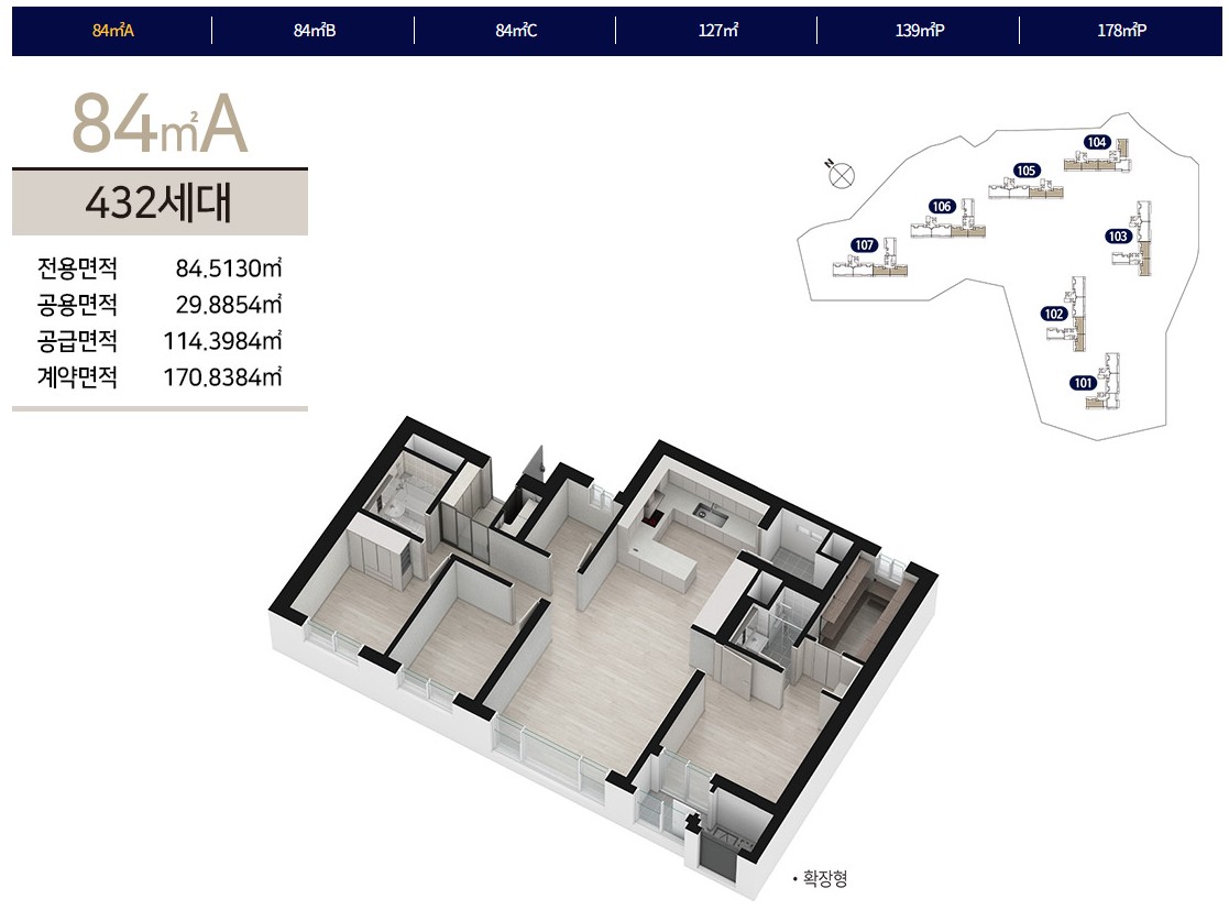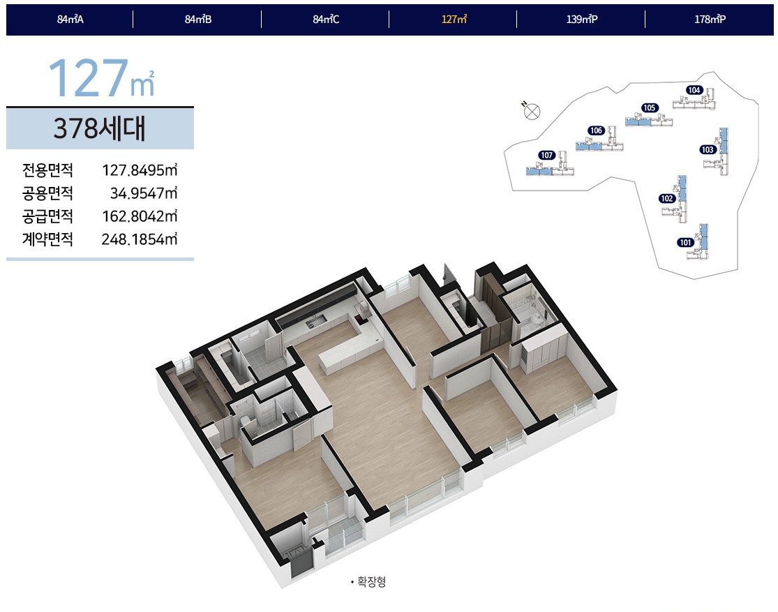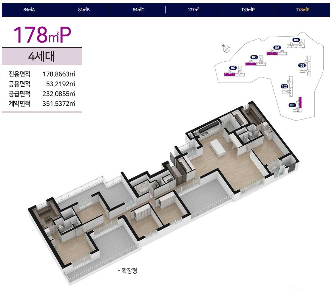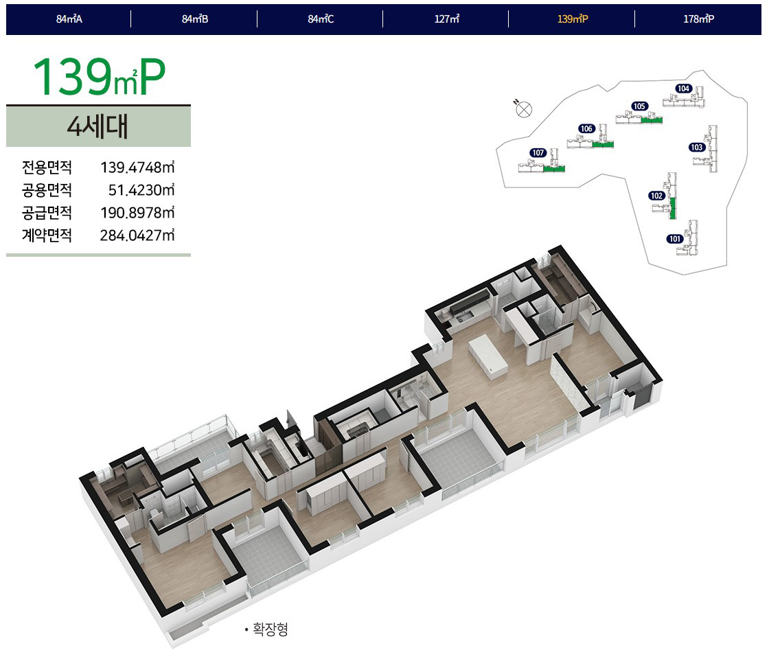전용 84㎡, 127㎡, 139㎡ P, 178㎡ P