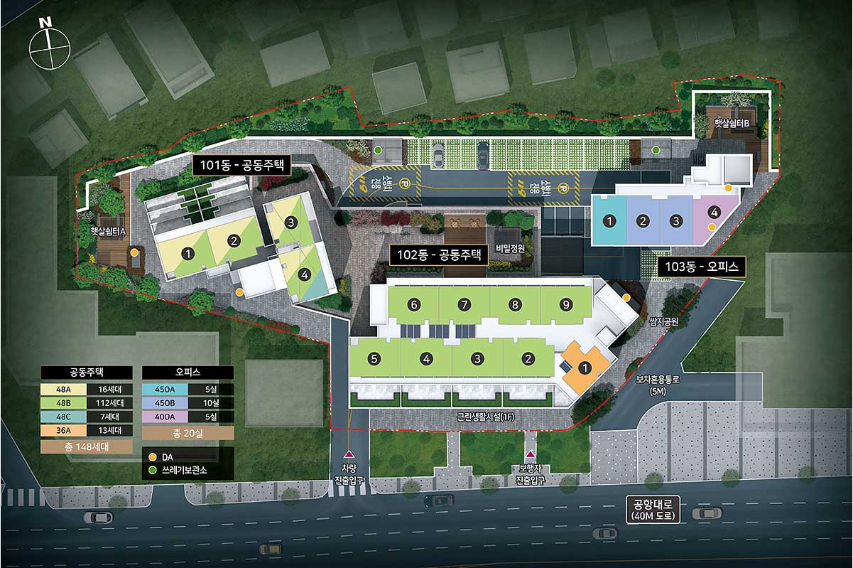 공동주택 총 148세대 / 오피스 총 20실 / 근린생활시설 총 8실