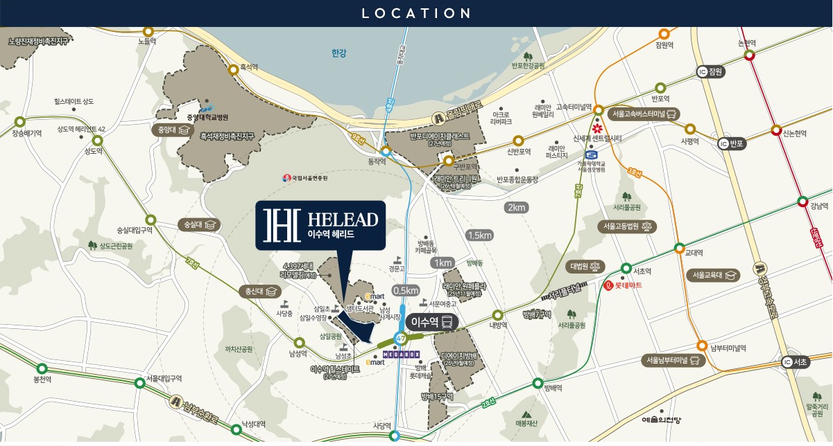4호선/7호선 이수역 3분거리 위치, 올림픽대로, 남부순환로,