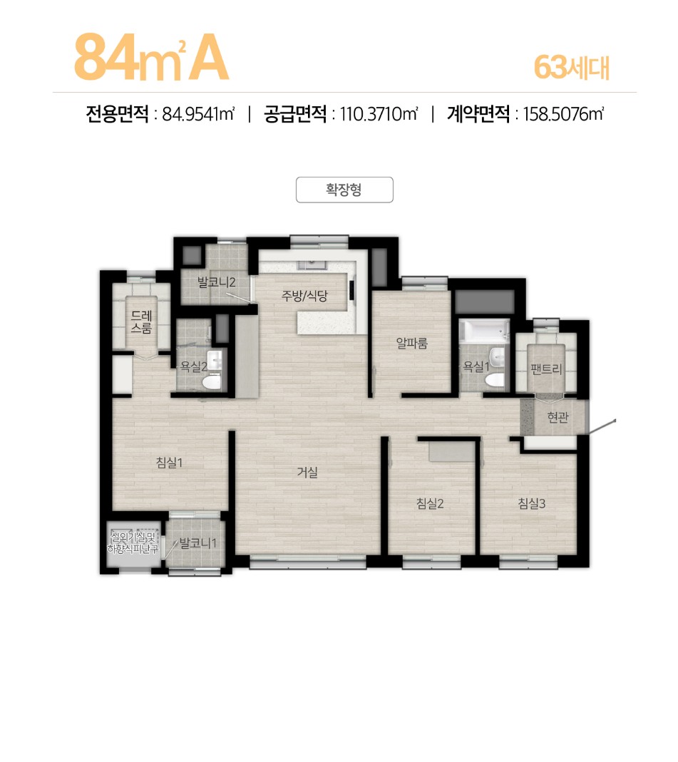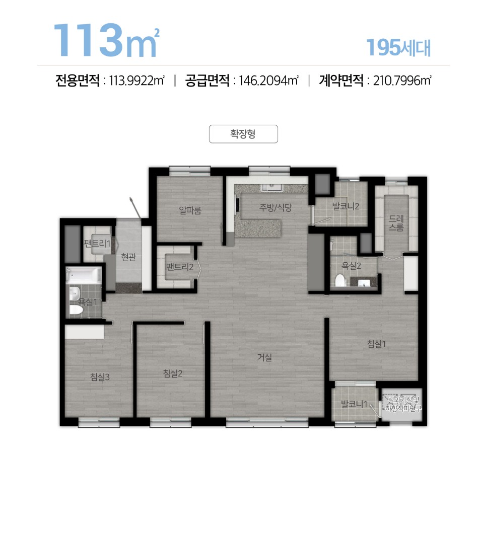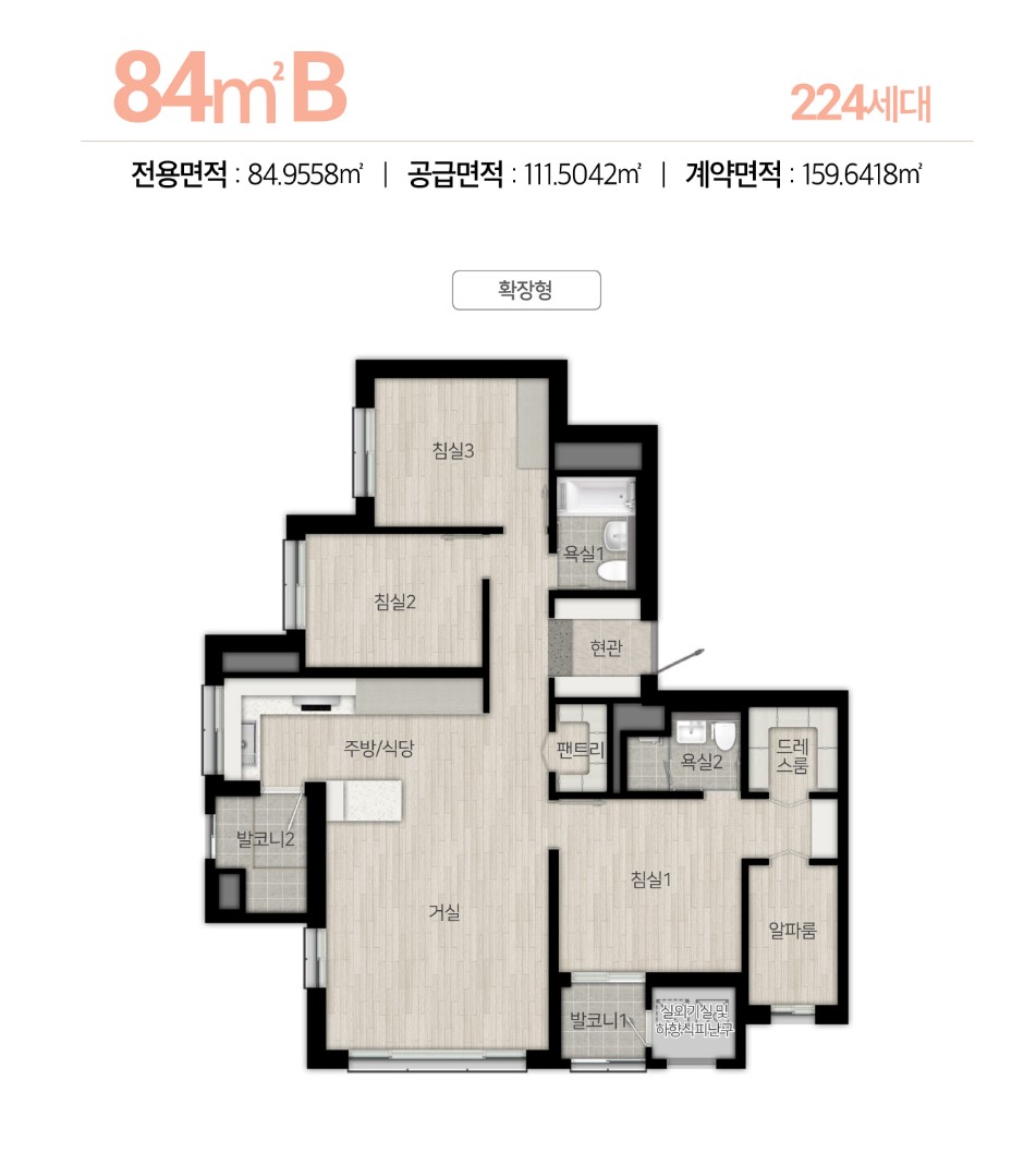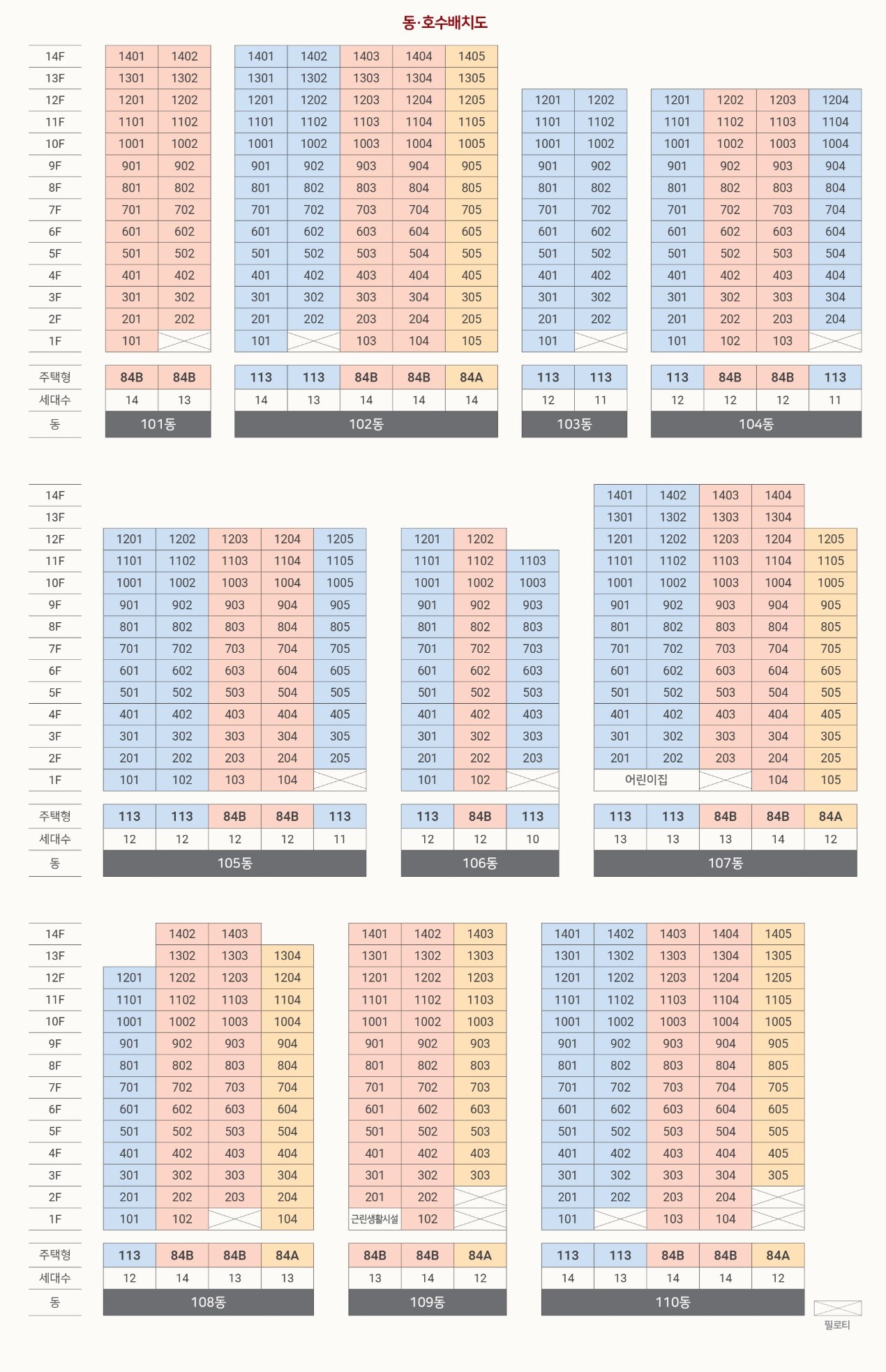 84㎡A : 63세대 / 84㎡B : 224세대 / 113㎡ : 195세대