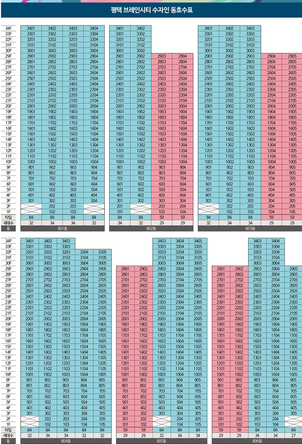 지하 2층, 지상 최고 34층, 6개동