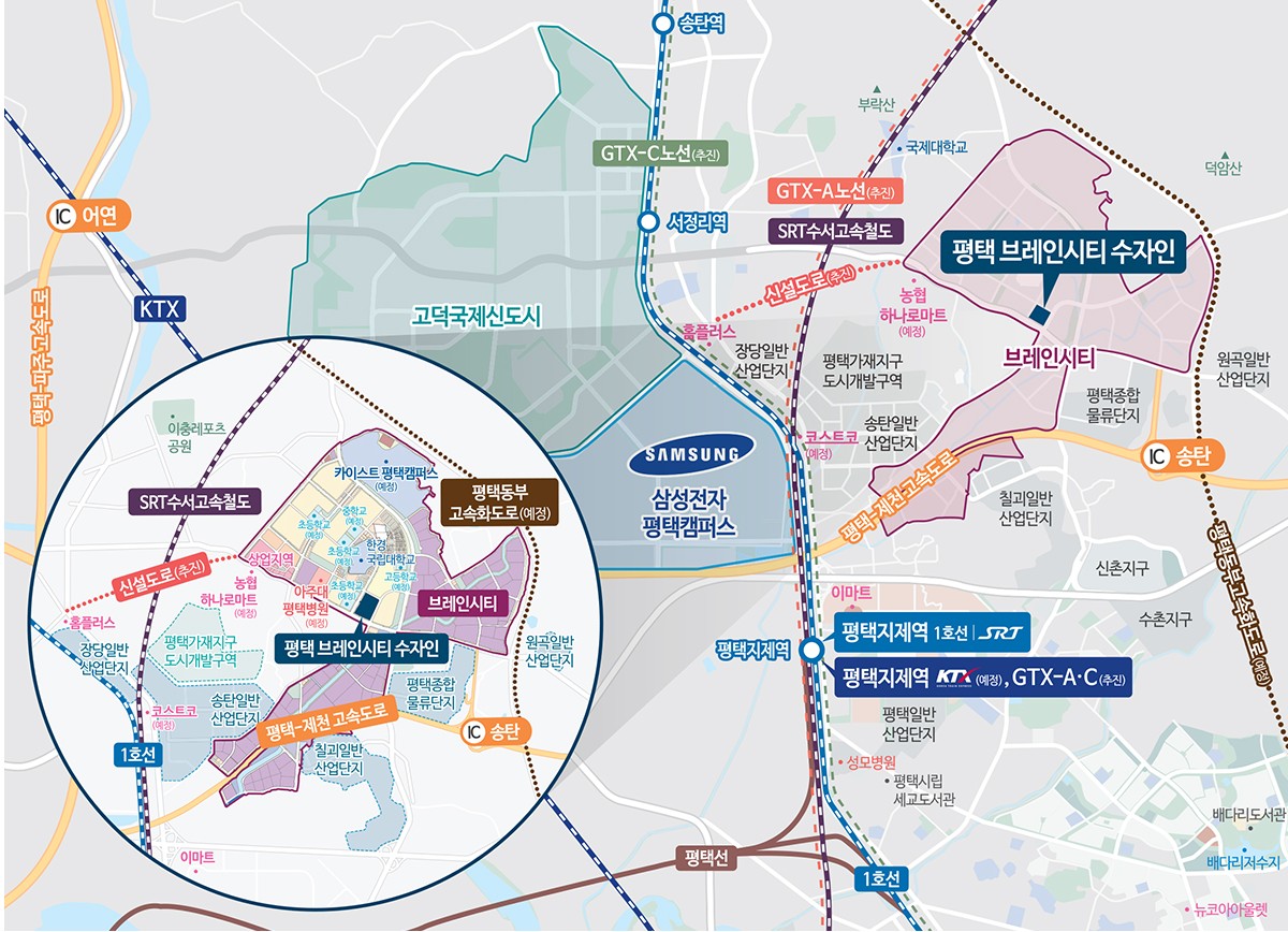 카이스트 평택캠퍼스(예정), 아주대 평택병원(예정),