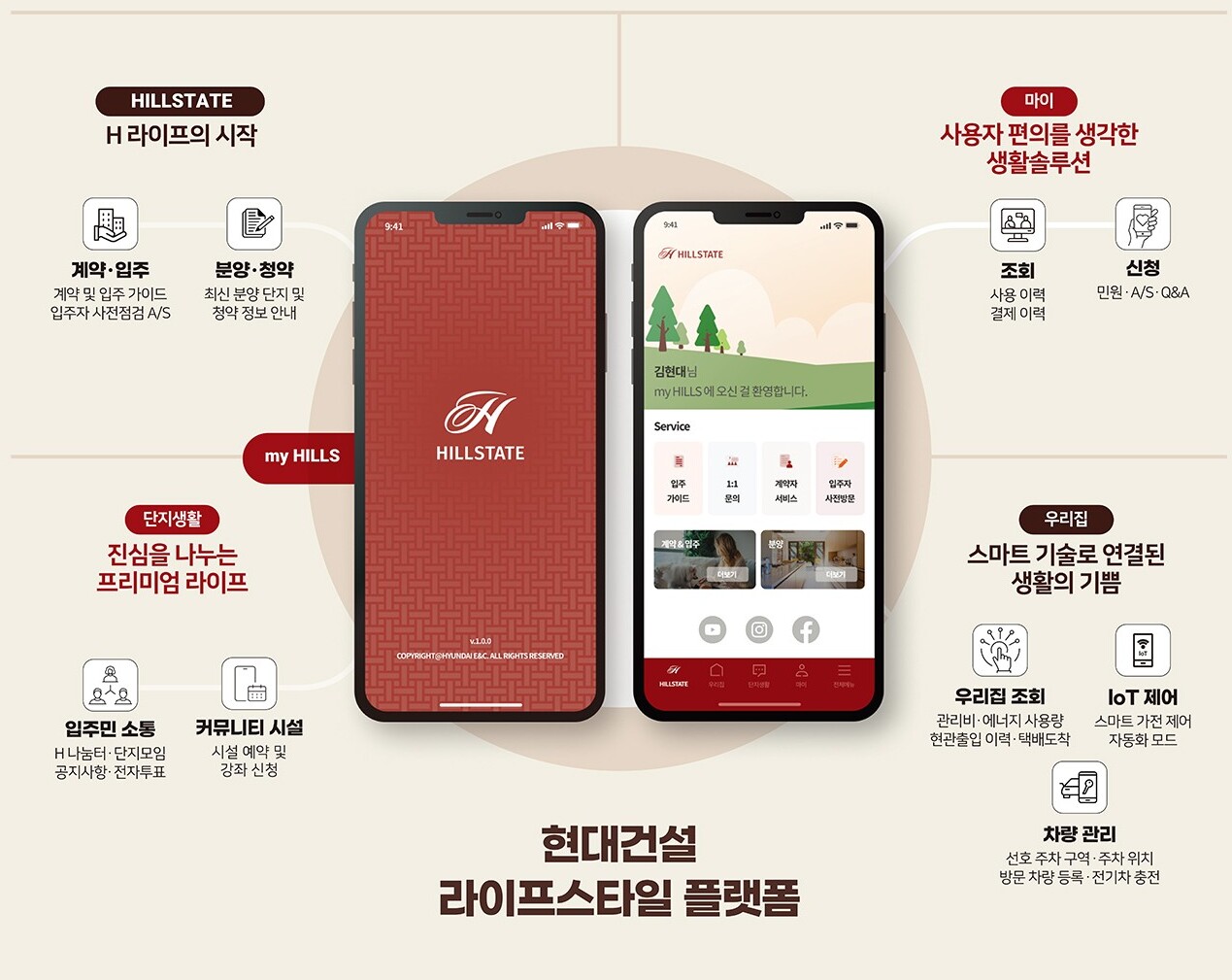 힐스테이트의 분양 및 청약 정보 조회부터 입주자 사전방문 예약, A/S신청, 입주 후 홈 IoT제어,